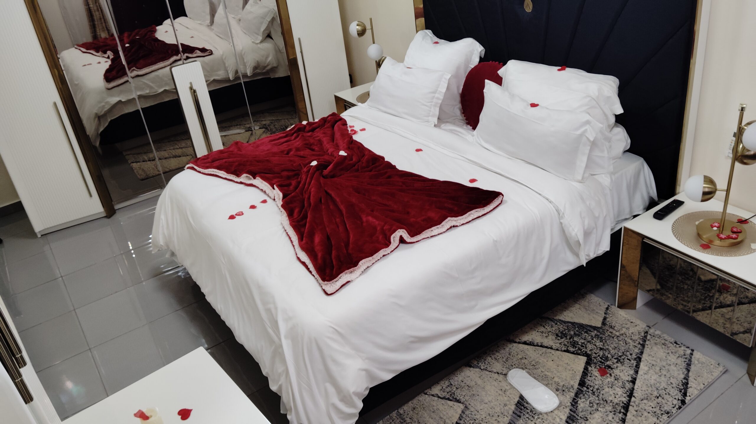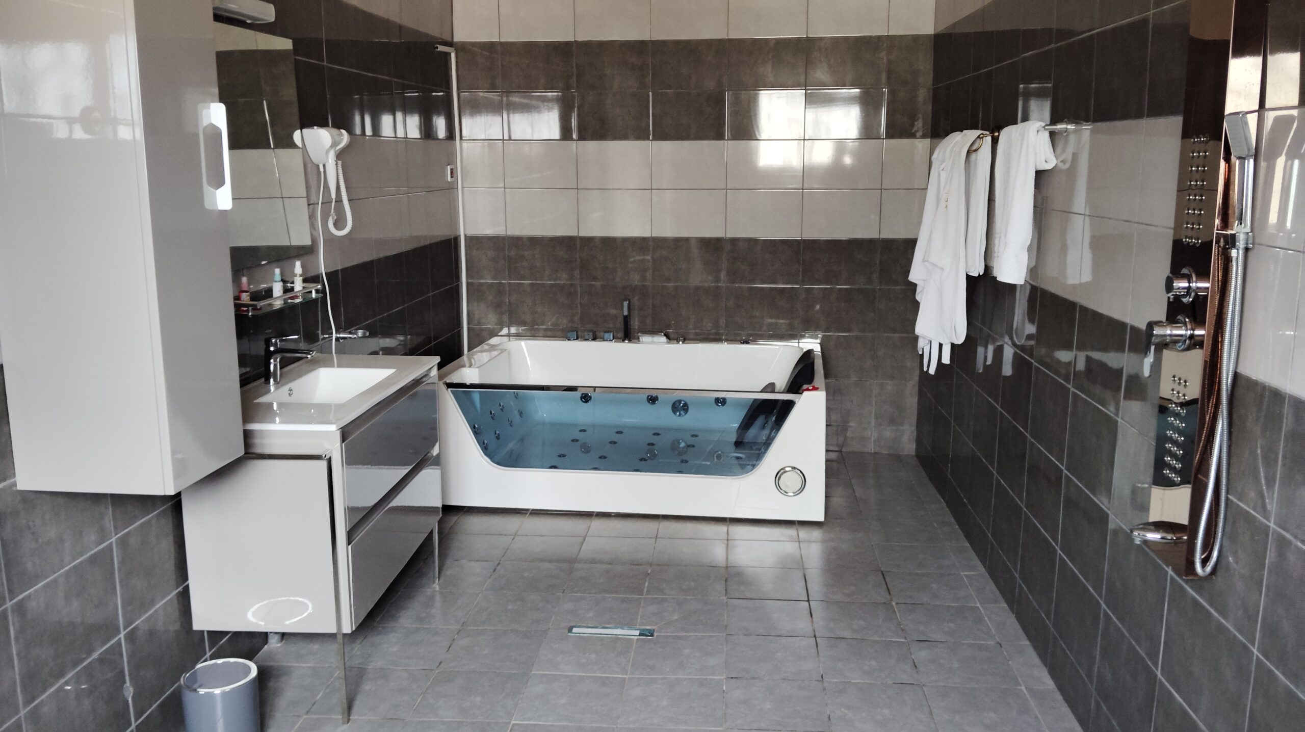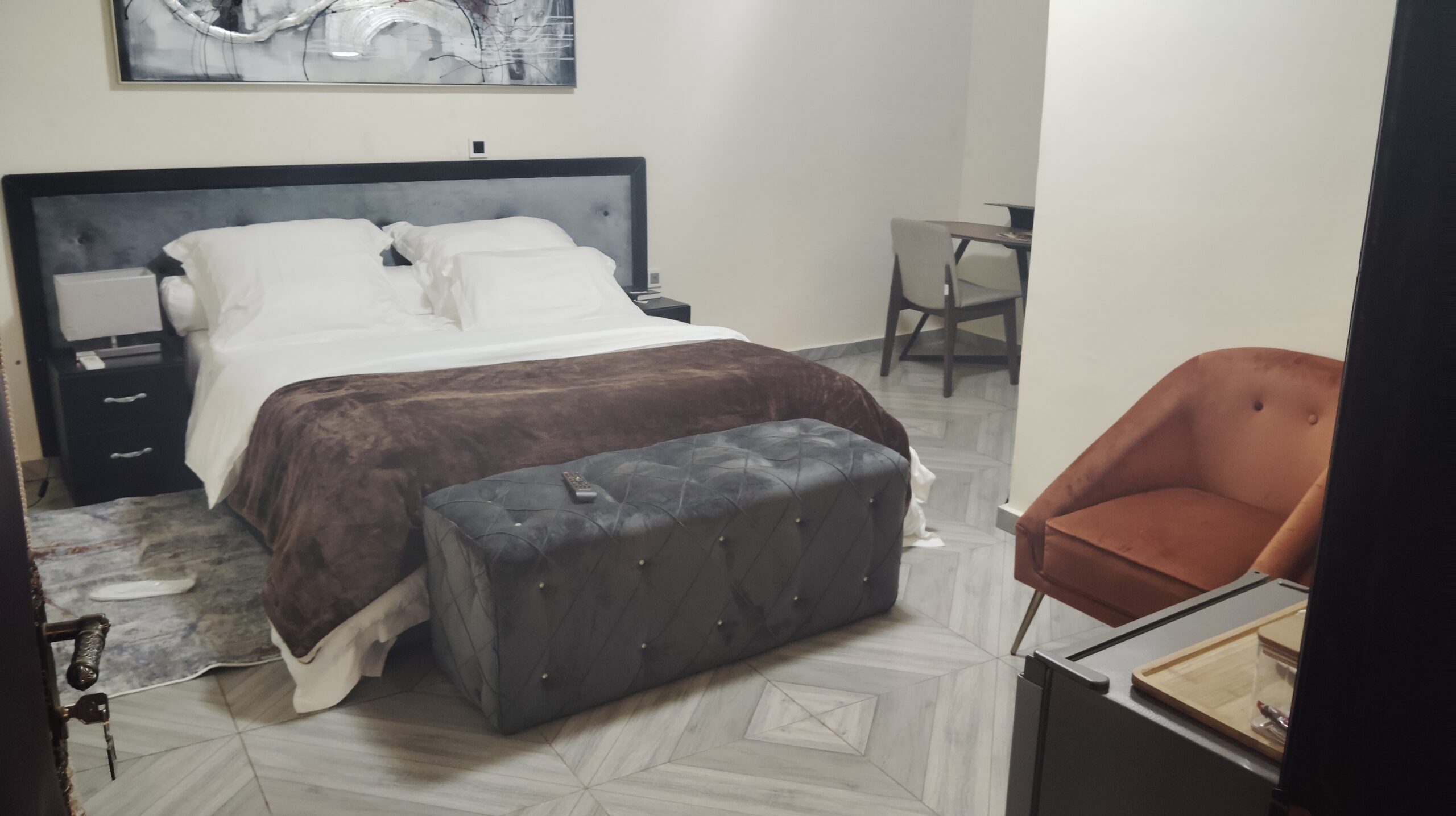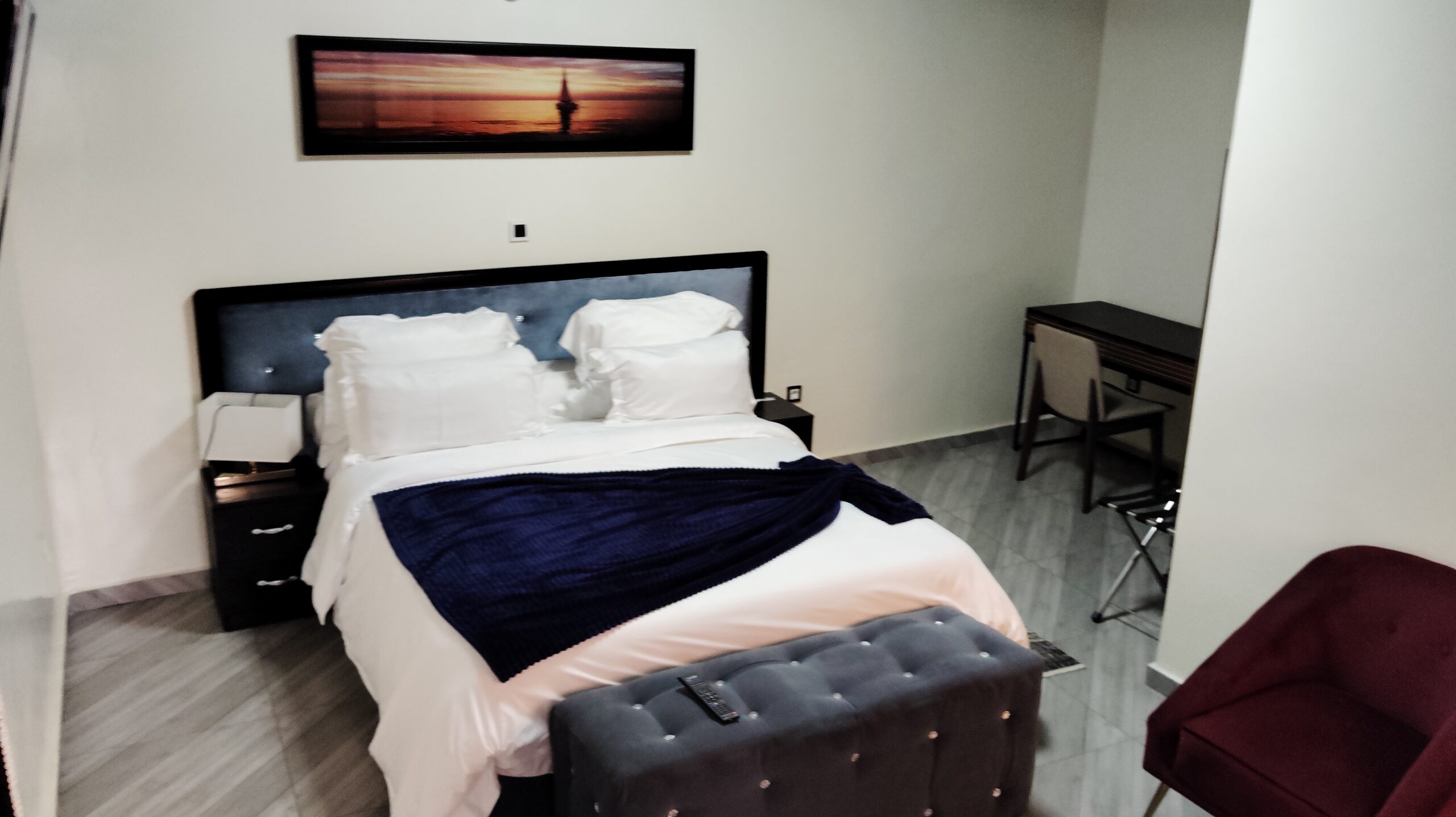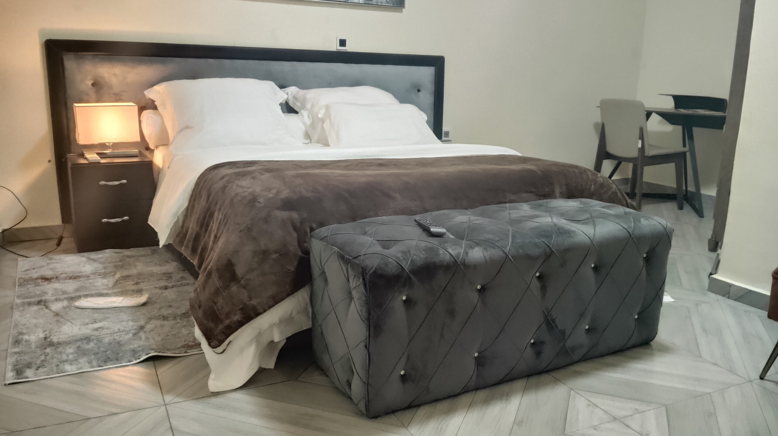 - Équipements : accessoires de toilette, Climatisation, douche + toilette avec eau chaude, Ecran TV 43 pouces avec tout Canal +, Frigo, Piscine, Placard de luxe, Plateau de courtoisie, Wifi