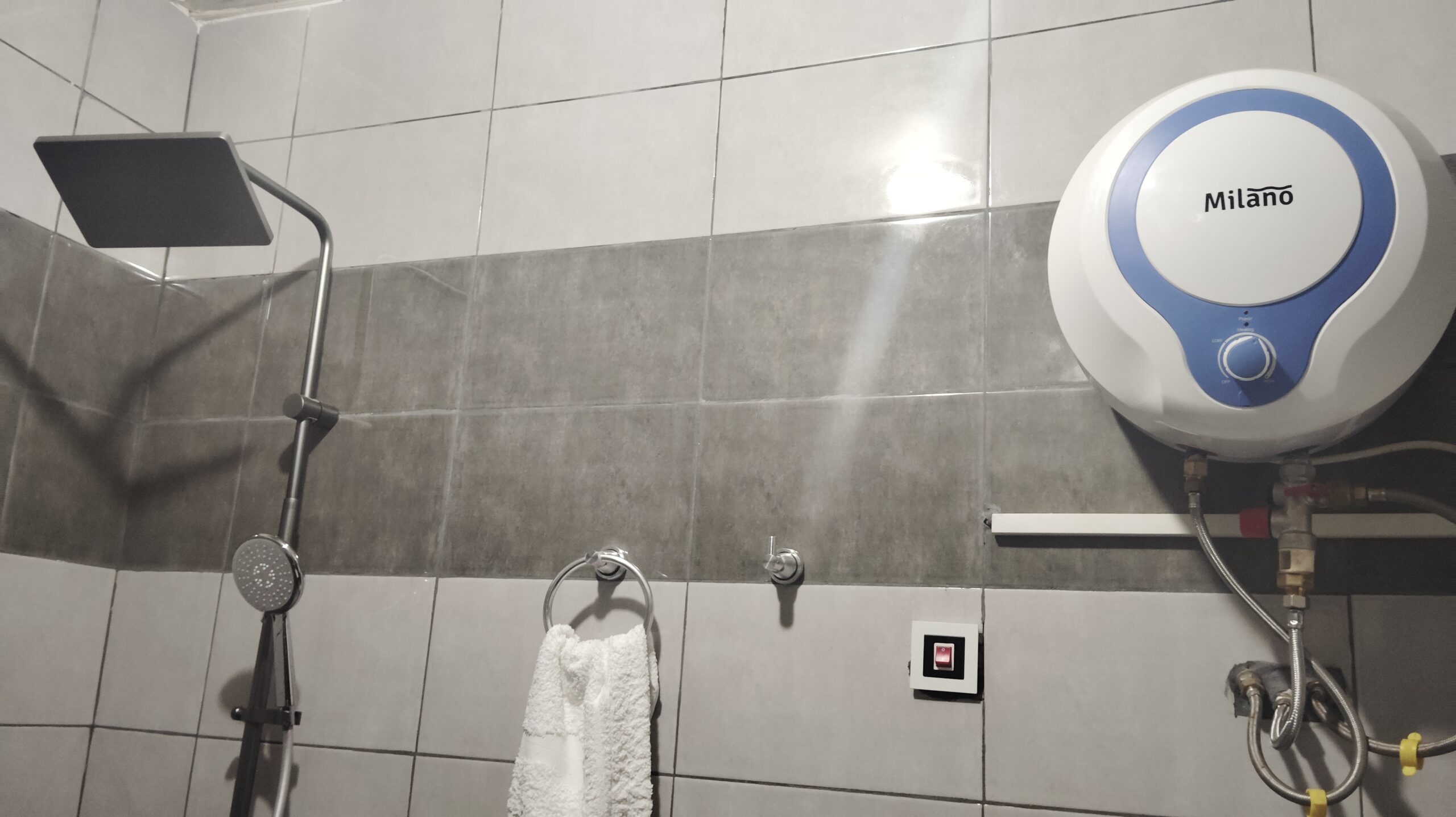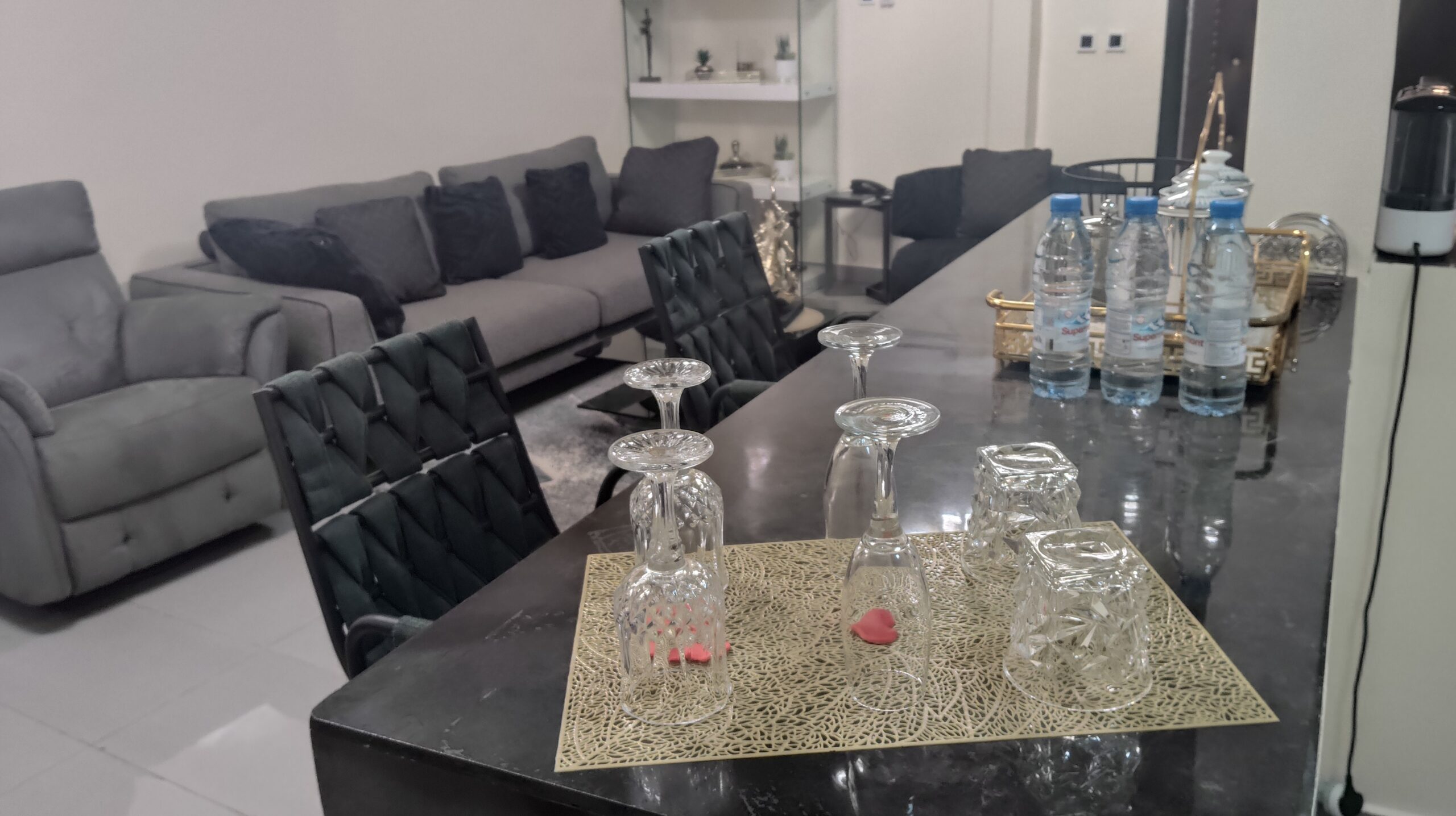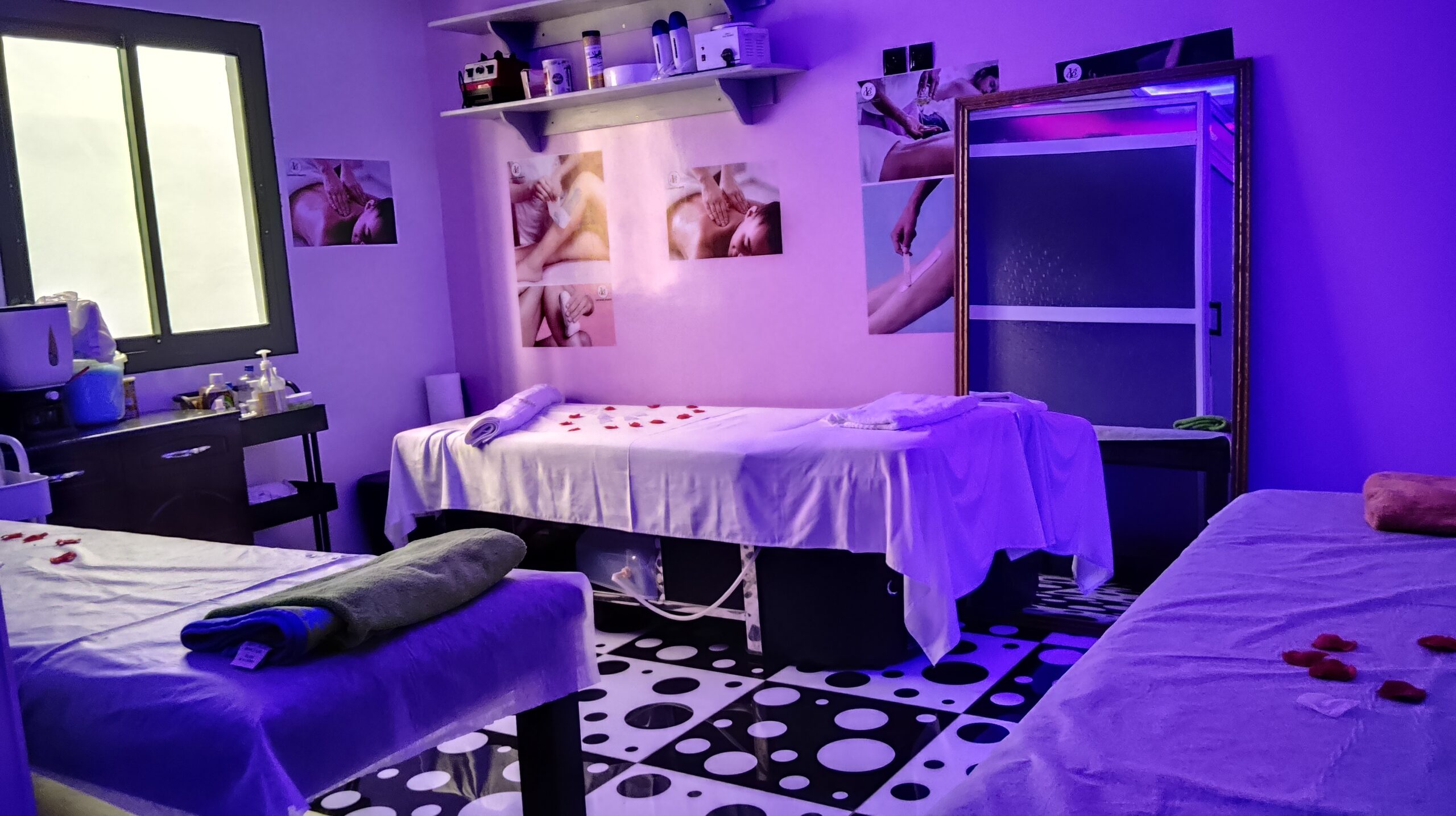 - Équipements : accessoires de toilette, Climatisation, douche + toilette avec eau chaude, Ecran TV 43 pouces avec tout Canal +, Frigo, Placard de luxe