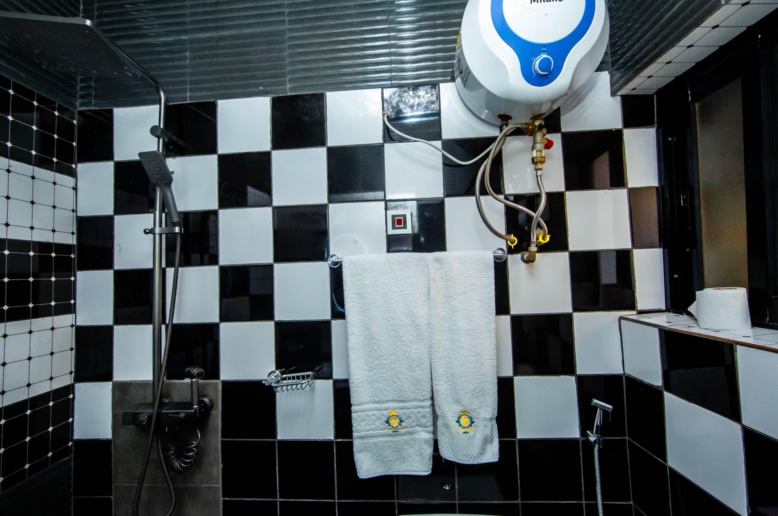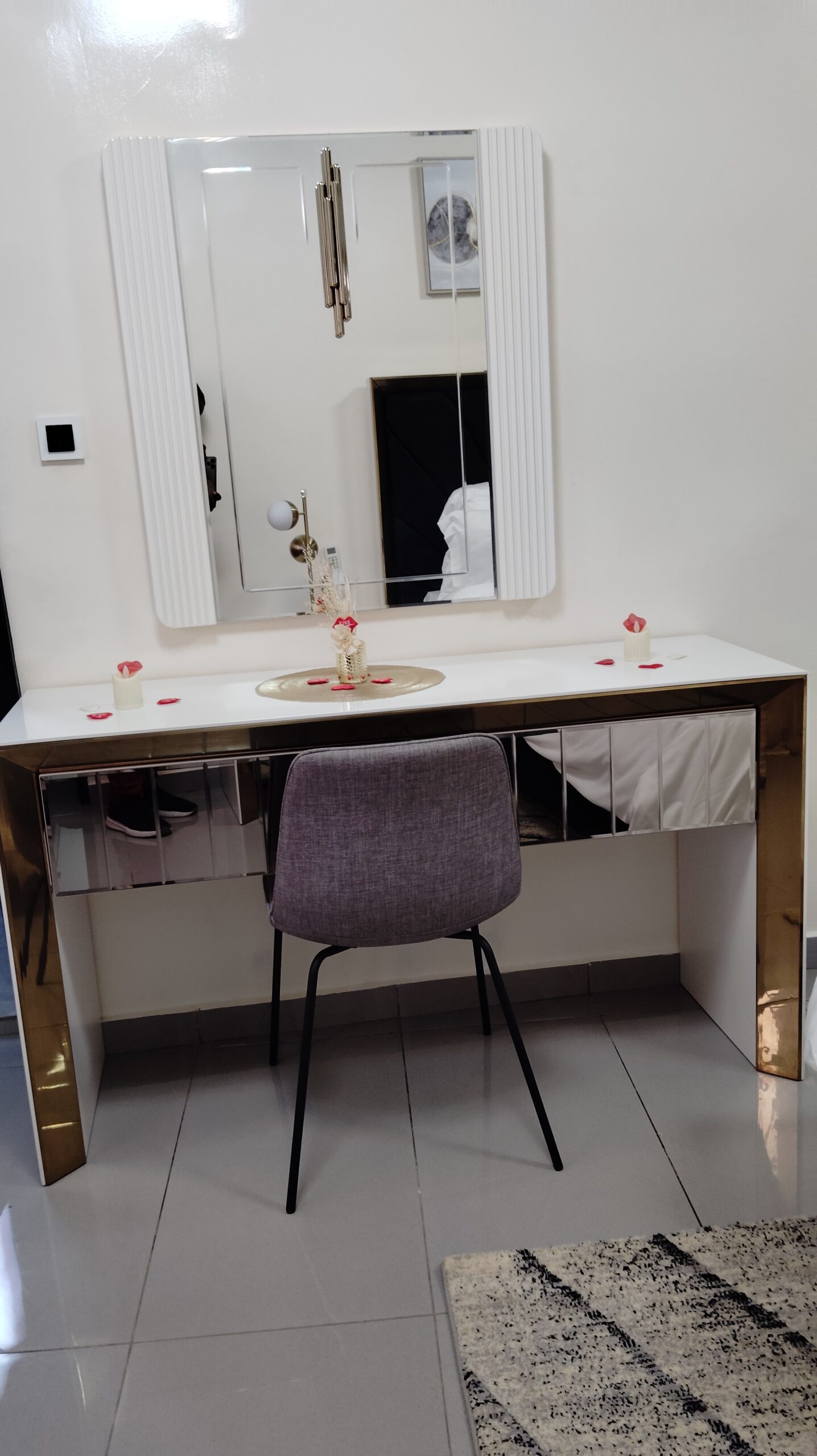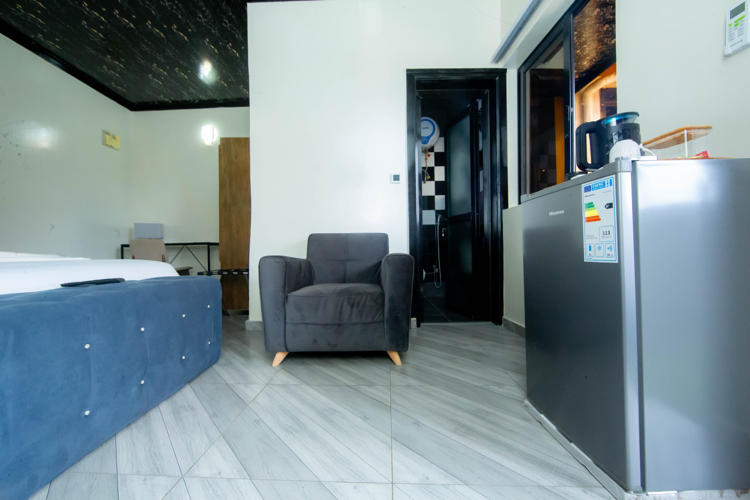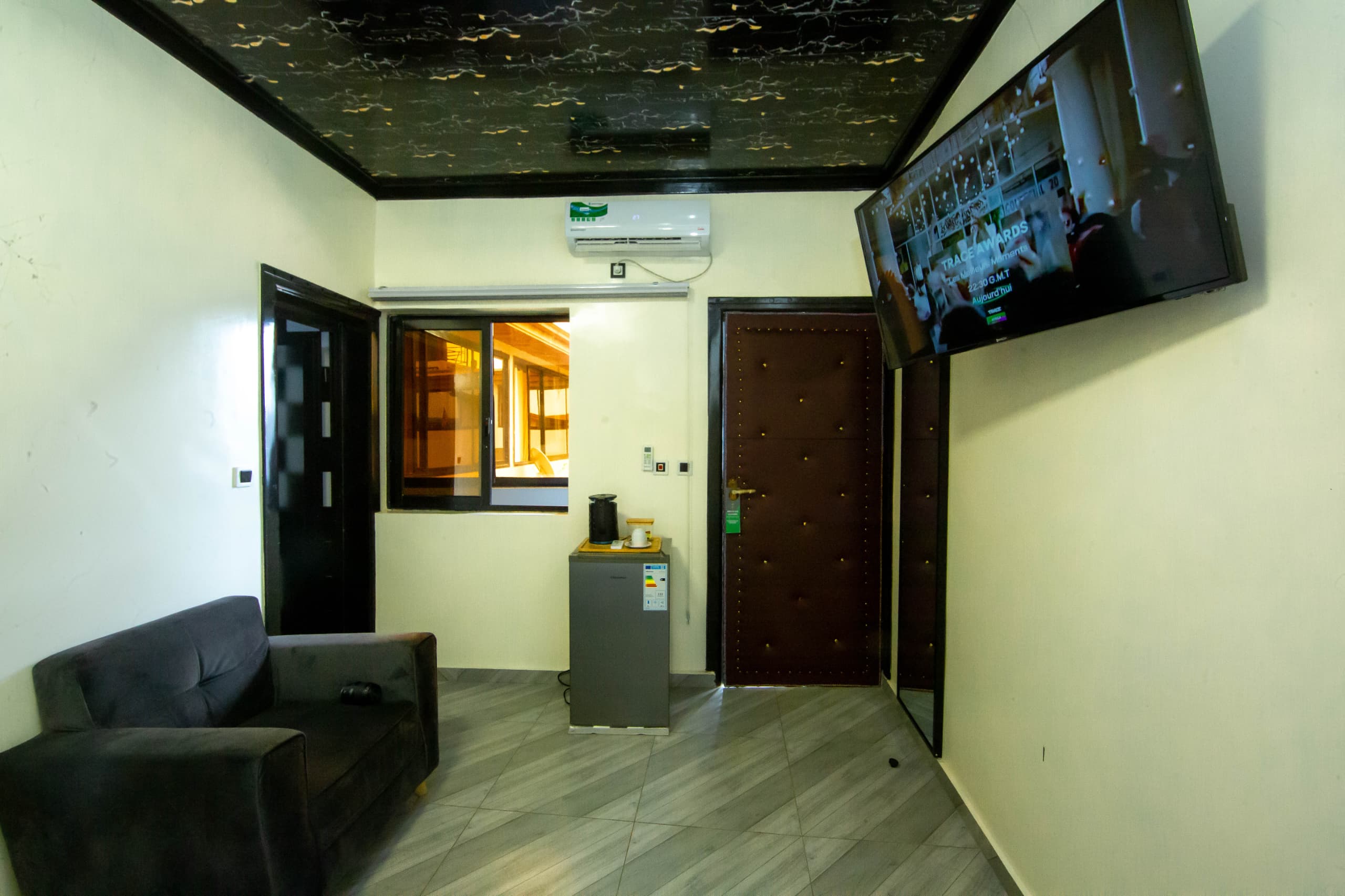 - Équipements : accessoires de toilette, Climatisation, douche + toilette avec eau chaude, Ecran TV 43 pouces avec tout Canal +, Frigo, Placard de luxe