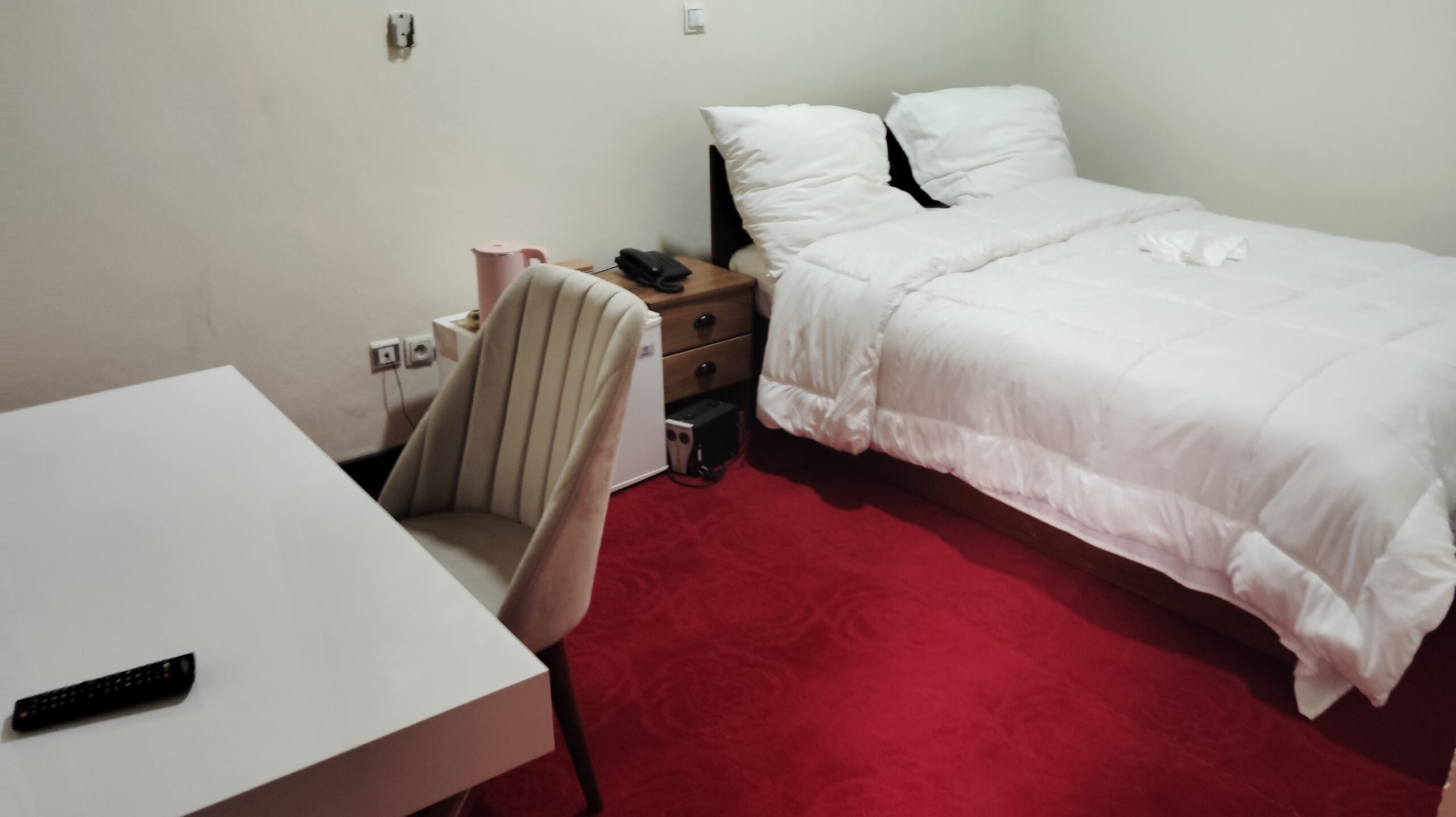 - Équipements : accessoires de toilette, Climatisation, douche + toilette avec eau chaude, Ecran TV 43 pouces avec tout Canal +, Frigo, Placard de luxe, Plateau de courtoisie, Restauration, Vin, Wifi